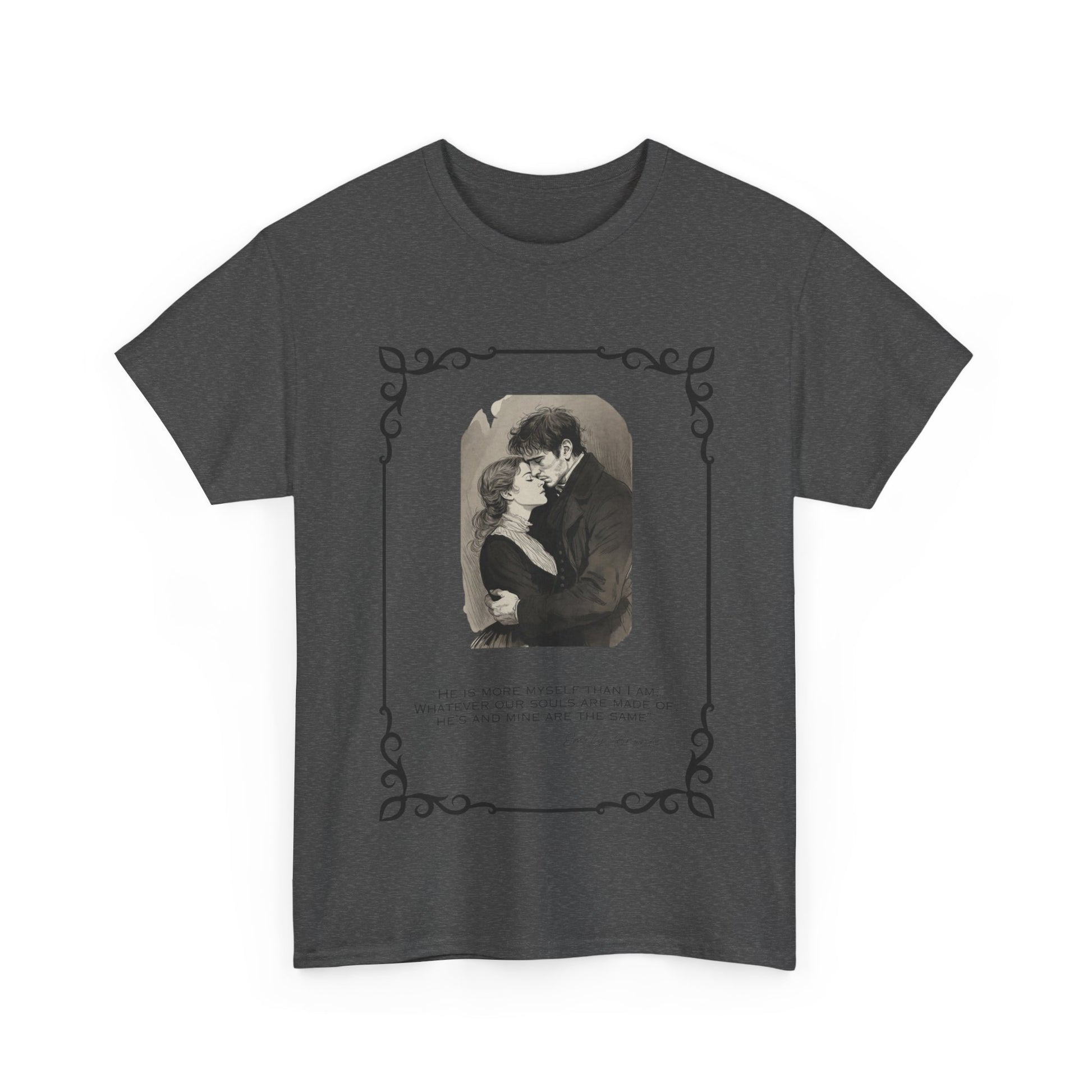 features our Wuthering Heights design – for the romantic book lovers who understand that a little chaos is just part of the poetry.Soft, slightly oversized and effortlessly nostalgic — this cotton tee wears like a familiar memory. A faded vintage photograph sits framed on the chest, its soft sepia tones and delicate scrollwork evoking rainy afternoons, old letters, and quiet conversations. The shirt’s relaxed silhouette and breathable medium-weight cotton make it something you reach for when you want comfort with a quiet, expressive edge. Pair it with worn jeans, a cardigan, or layer under a jacket for a look that reads like a page from someone’s personal archive.